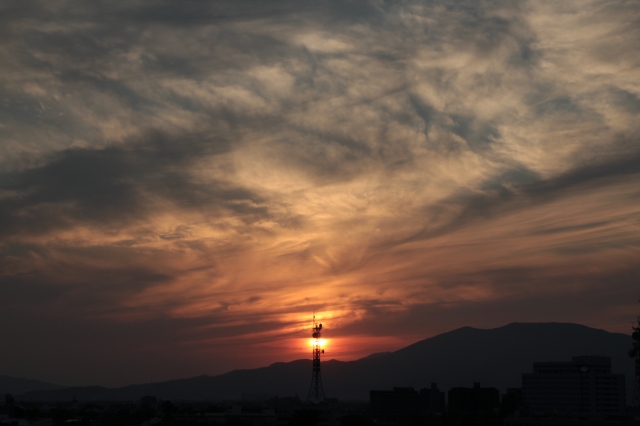 テレビ塔の向こうにちょうと夕日が沈んでいってたのでした。