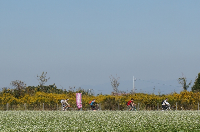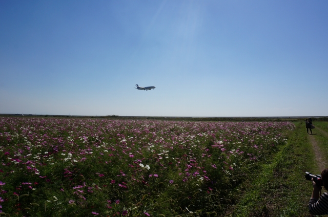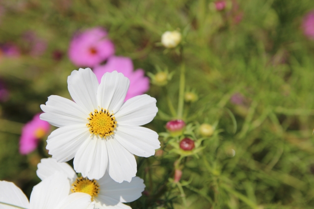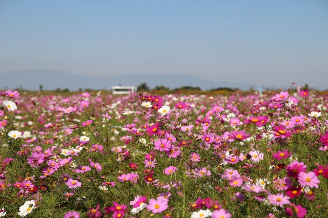 コスモス畑の横の白い花畑は、何の花かわかんないけど。