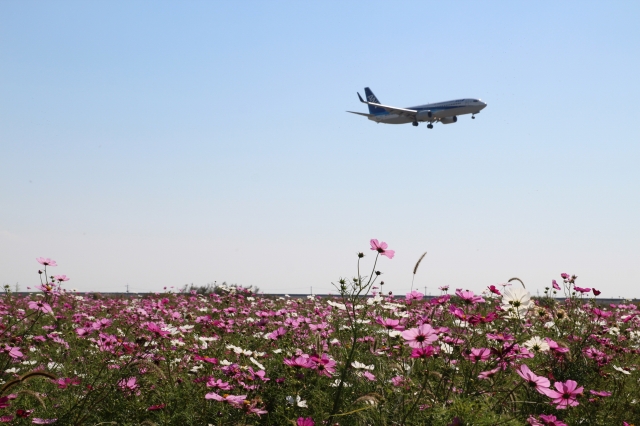空港近くで、なんと図らずも飛行機が飛んできたー!!