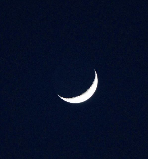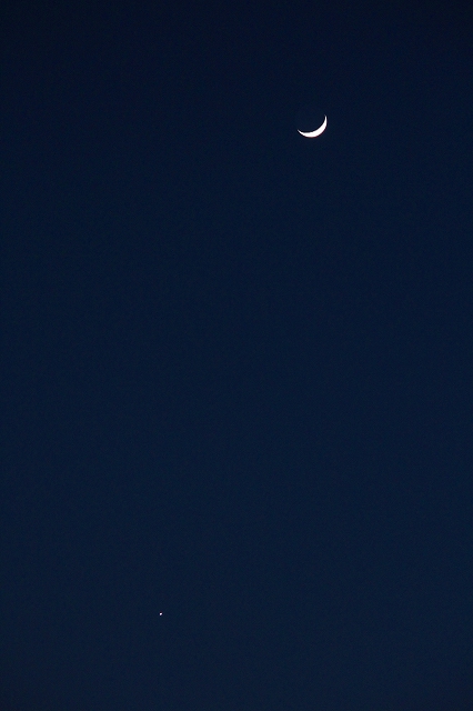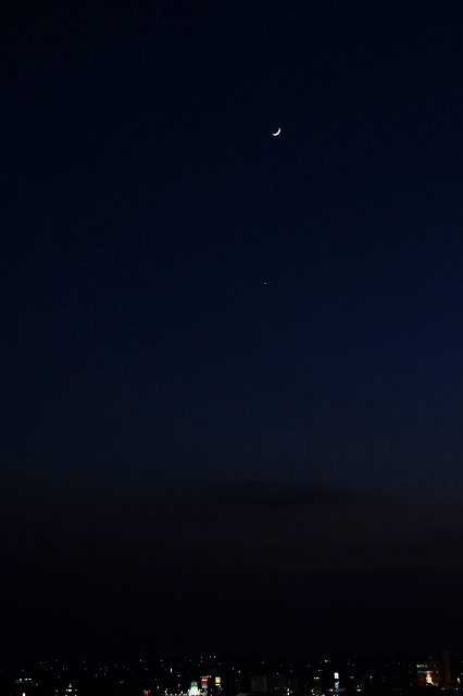 三日月と・・・その下に見えるのは・・・たぶん金星。