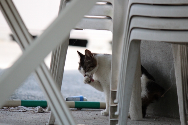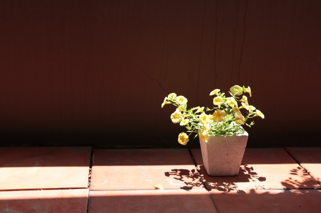 お天道様が高くなって、わが家のベランダの日あたり具合こんな感じ。