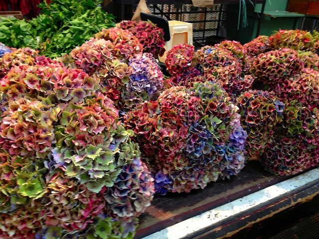 日本の市場では(たぶん)ないと思う、この絶妙な色合いの紫陽花。
