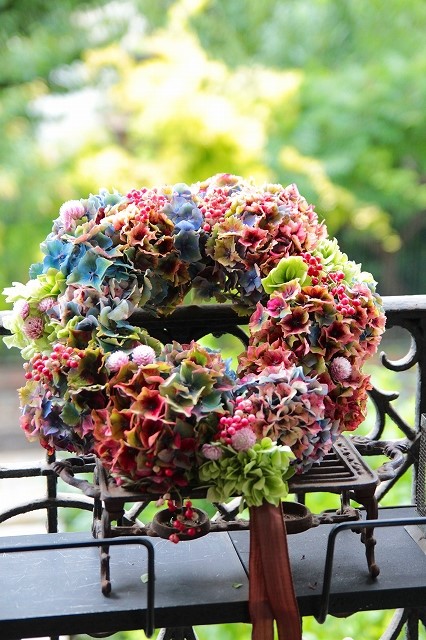 日本の市場にはまずない!!素敵すぎる色合いの紫陽花を使ったリース。