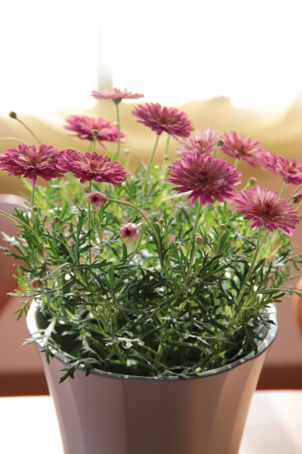ニュアンス色の八重咲きマーガレット鉢植え ¥400