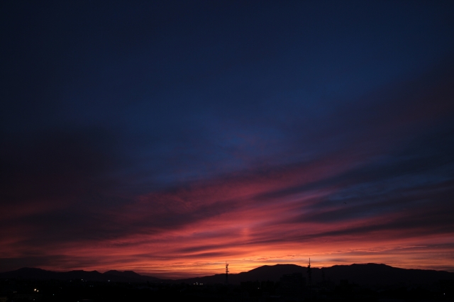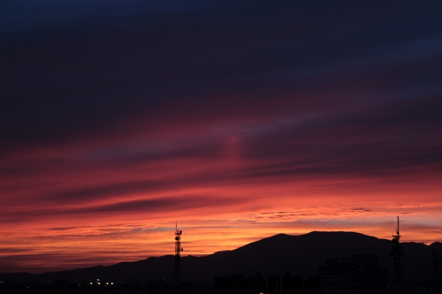 テレビ塔の向こうにちょうと夕日が沈んでいってたのでした。
