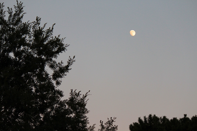 夕日に照らされてちょっとオレンジ色の月。