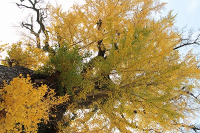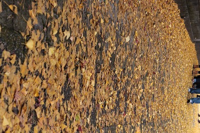 上の大銀杏も、下の黄色いじゅうたんもホントは縦なのよ。