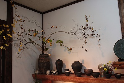 どこの窯でも、自然に素敵に花や枝が器に生けてあって、しばし見とれる。