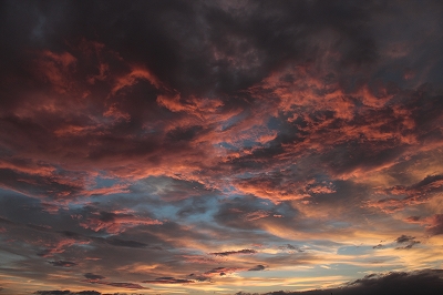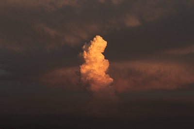 夕空に、ぽっかり浮かぶオレンジの雲。