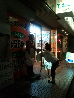 隣のお店の看板人形を彦星と間違えてるみたいです^^;