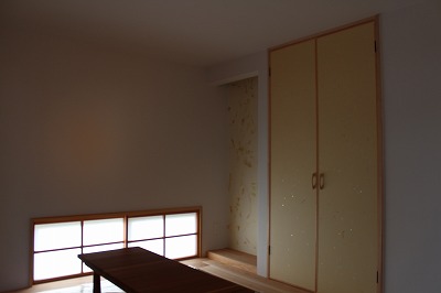 床の間風スペースの壁は・・・和紙っぽい模様入り。