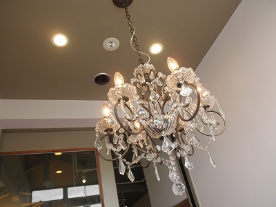 入口ドアを入るとこんな素敵なシャンデリアのあるお店。