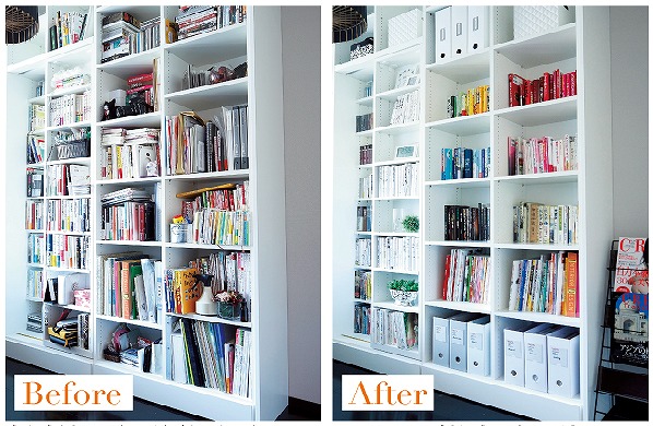 Before/Afterって書き方でも分かる通り、Afterのほうがスッキリ片付いたお手本の本棚ですよ。