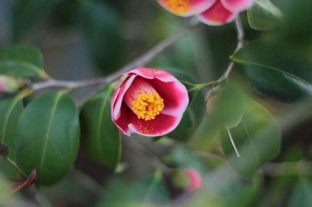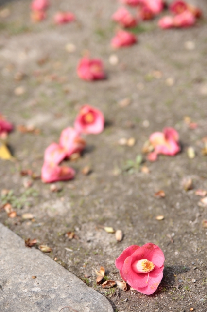 はたまた素敵な古民家のお庭にて。椿の花が美しく散っていた。