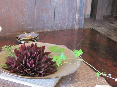 平皿に大輪の花を盛る。斬新。さすが花友さん!