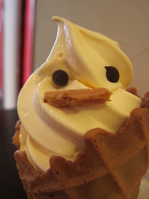 ひよこ顔がかわいい、たまご家のソフトクリーム。