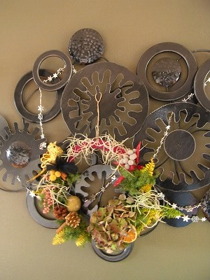 定番のヒバやスギの葉っぱやマツボックリにトウガラシは必須だけど