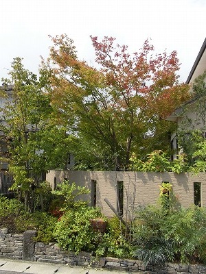 塀を敷地の内側に下げて、塀の外側に植栽してあるのです。
