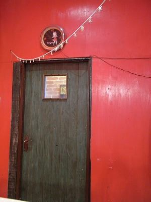 赤い壁にグリーンのドア。めちゃ好みです☆