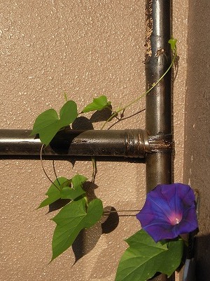 そうそう。いつかの日記で、ベランダのタイルの隙間から芽が出てた朝顔。