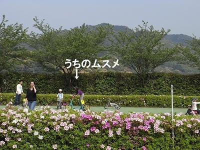 満開のツツジと高良山を背景に「休日」気分を満喫した母でした。